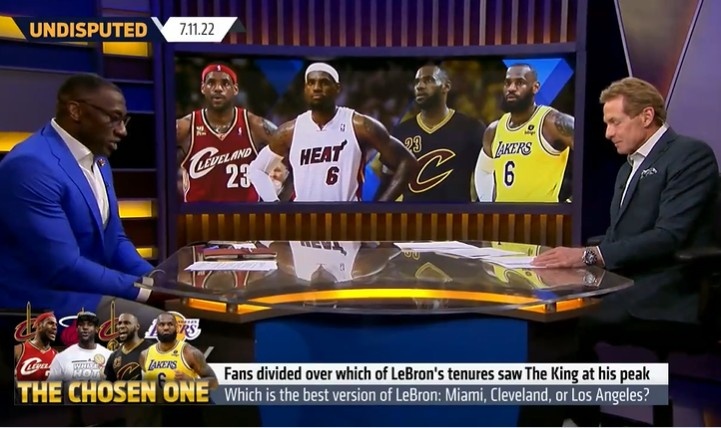 直播吧7月11日讯 今天名嘴夏普和Skip在节目中讨论到了哪个版本的勒布朗是最强的。