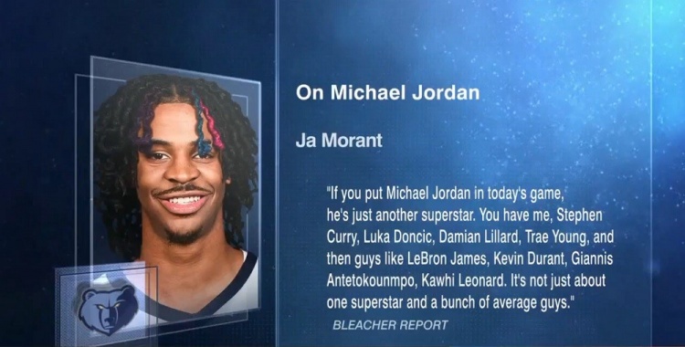 《This Just in》这段节目讨论的话题是“莫兰特说:乔丹在如今的时代只会是一个普通的超级球星,如今有我、库里、东契奇、利拉德、特雷-杨以及其他家伙像勒布朗、杜兰特、字母哥、小卡,联盟不再是关于他一个人,都是一群实力差不多的人。”