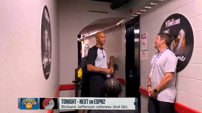 直播吧7月12日讯 刚刚,理查德-杰弗森领取了自己今天的裁判服,他将身穿77号制服吹罚稍后尼克斯vs开拓者的第二节比赛!