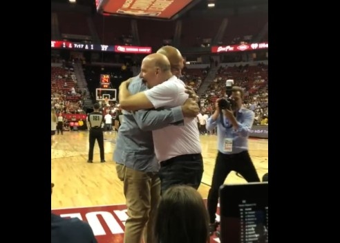 直播吧7月13日讯 LV夏联,湖人队vs快船队,湖人新帅哈姆来到场边与快船老板鲍尔默拥抱热聊。