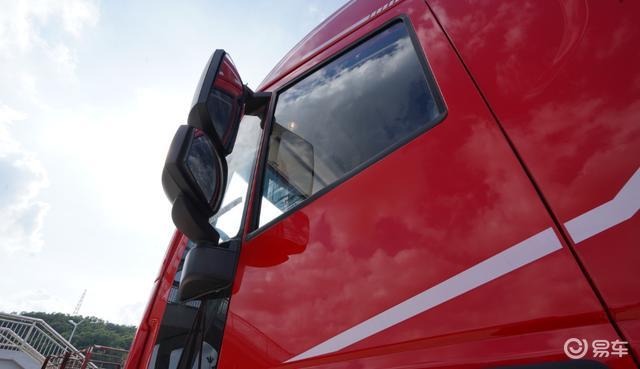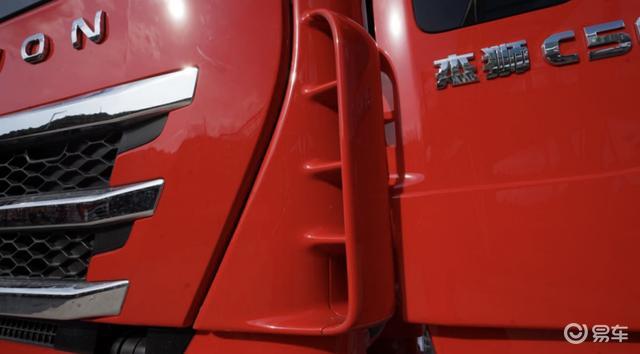值得一提的是,红岩杰狮2020 AMT牵引车的前脸两侧,还采用导风槽的设计,不仅可以降低风阻,同时还能利用车流清洁车门。这个设计可以说非常用心。