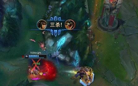 7月13日讯 LPL夏季赛TES和V5的第二局比赛里,在拿到优势后Knight的蛇女面对卡尔玛、狗熊、鳄鱼三人的留人,正面输出拿下三杀!
