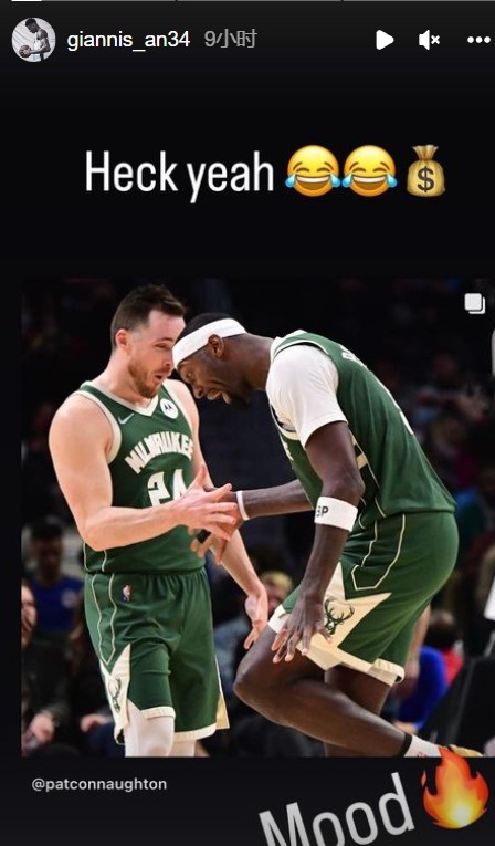 直播吧7月14日讯雄鹿官方此前先后宣布与波蒂斯、康诺顿完成续约。雄鹿球星字母哥今日在INS上向他们送上了祝贺。康诺顿晒出与波蒂斯的赛场击掌照,并配文:状态
