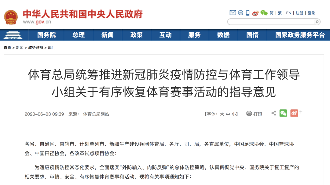 体育界也并非没有好事传来。德甲联赛已于5月15日恢复;英超联赛已于6月17日正式重启;西甲也已恢复。和以往相比,尽管现场没有了球迷的呐喊声,但好歹不至于在家里蹲。在5月29日的通知中,国家体育总局也提到,足球、篮球等体育赛事应该单独制定恢复方案,经审核评估后实施。