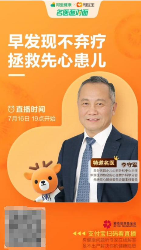 直播结束后,李守军教授团队将在符合条件的患者中,挑选五名学龄前先心病患儿和两名胎儿先心病孕妇患者,提供线下就诊绿色通道。符合条件的患儿家庭更可通过北京阜外医院的资助渠道,申请爱佑慈善基金会的“爱佑童心”项目救助。
