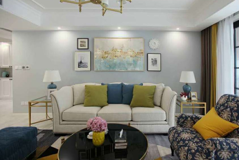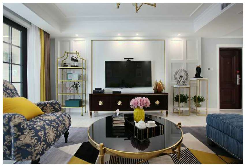 新家采用的是一个美式风,虽然装修费不多,但是却有种小资情调,特别是这个客厅,让人有种在别墅的错觉。以简洁的硬装加上别出心裁的软装,利用黄铜色铁艺与黑色烤漆为主,艳色摆件装饰为衬,轻奢的韵味扑面而来。