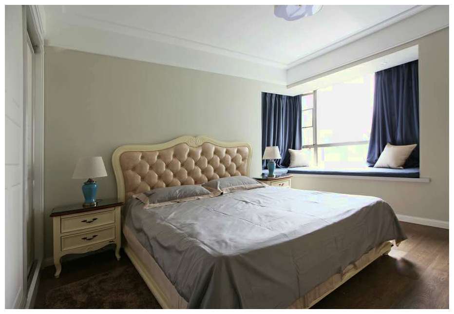 卧室里面也有一个供人休闲的飘窗,因为家里的楼层比较高,所以无论是白天还是夜晚,都能给人一个良好的体验感。整体上是一种适合睡觉的沉稳静谧的氛围,给人以简洁明快的空间感。