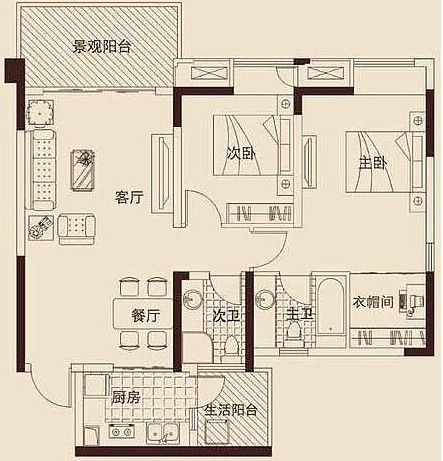 户型非常不错,这个楼盘也是非常抢手的,很幸运的摇到了我,就被我买下来了,两室两厅的户型,客厅带阳台,厨房也有一个生活阳台,主卧空间特别大。