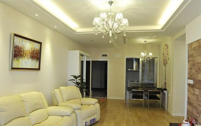 客厅,买了一套暖白色的皮质软包沙发,沙发墙是刷大白的,吊顶安装了灯带很时尚,营造整个空间简单大方,给人很舒服的感觉。