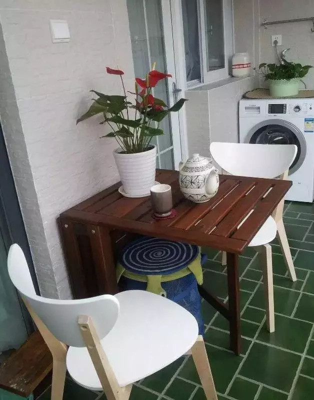 这就是我每天吃饭的阳台,这里摆放了很多绿植,视野风景也好,用餐心情都不一样了。