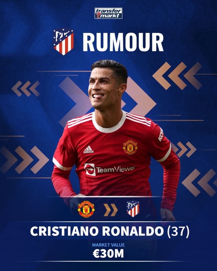 直播吧7月19日讯 近日C罗与马竞的传闻逐渐增多,相关机构更新了C罗下家的赔率,马竞已涨至第二。