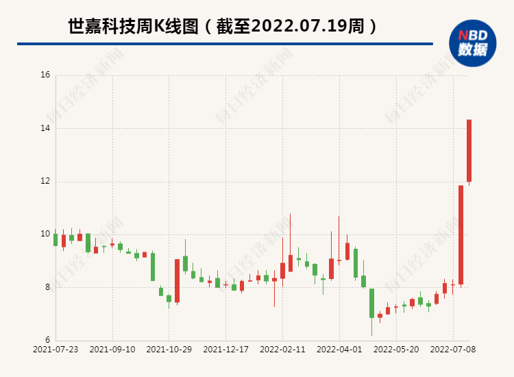 近日,A股最为红火的概念当数储能、一体化压铸等。其中,储能概念股之一的世嘉科技(SZ002796,股价14.32元,市值36.15亿元)7月19日再次涨停,已收获六连板。自7月12日至7月19日,6个交易日大涨77.23%。