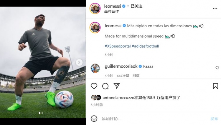 直播吧7月20日讯 梅西在个人社媒晒出照片,他先是身穿亮绿色新战靴做出过人动作,后又坐着摆出自己的POSE。