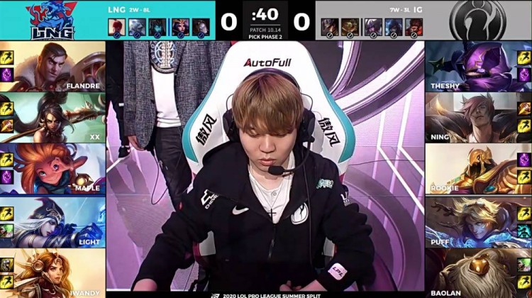 【20:00】LNG上路中野抓死发条随后强开大龙,IG四人来战杰斯与EZ爆炸伤害,虽然LNG豹女惩戒下大龙但是LNG被团灭,杰斯收下四杀。