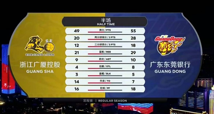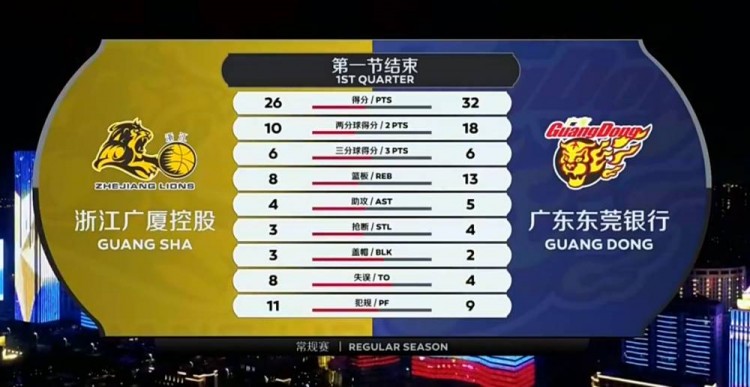 广东(41-2):威姆斯25分10篮板4助攻4抢断3封盖,易建联16分12篮板2抢断3封盖,任俊飞13分8篮板,赵睿15分5助攻3抢断,周鹏7分4助攻,杜润旺8分5篮板,胡明轩11分5篮板2助攻。