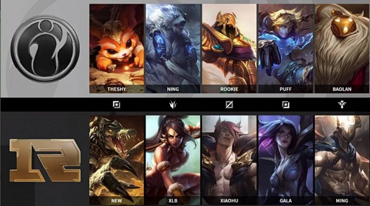 红色方RNG:寒冰、加里奥、猴子、男枪、塔姆