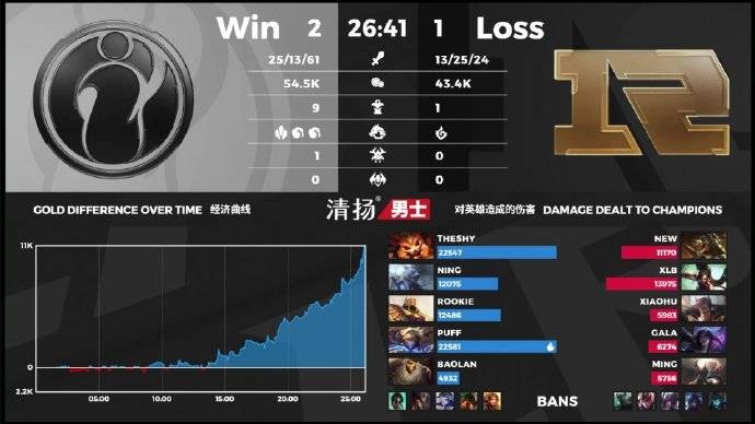 【26:25】沙皇抓到机会秒掉了卡莎,RNG溃败被击杀四人后结束了比赛。