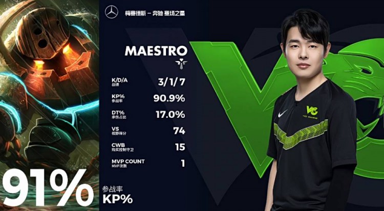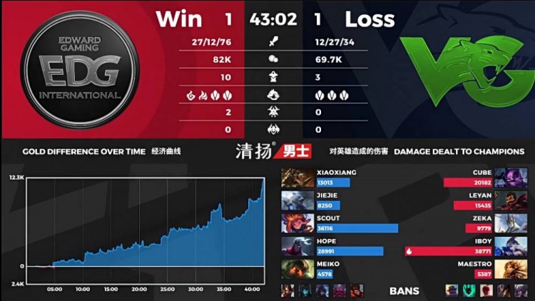 【42:20】中路VG强开维鲁斯但被闪现拉开,EDG随后反打直接团灭了VG结束比赛。