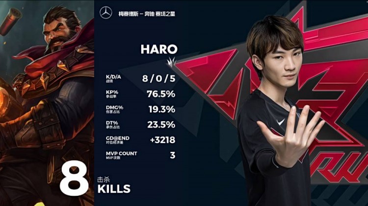 【9:20】ES打野千珏来到上路,铁男先行闪现大招关住奥恩打残,大招结束后千珏跟上伤害拿下人头。