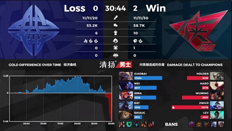 【30:10】RW抓住机会强行拿下小龙,ES强行来打被青钢影完美绕后。青钢影配合卡牌轻松切死ES双C,RW完成0换5结束比赛。