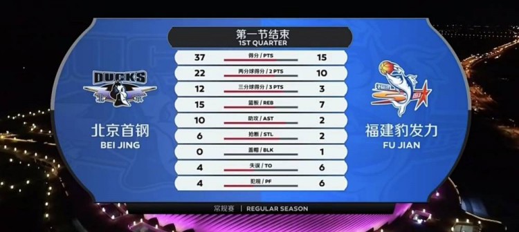 首节上来,林书豪状态不错连得四分,而福建方面徐铭智同样手感火热,个人连中两记远投给出回应,但此后福建突然哑火,进攻端陷入长时间的低迷,北京则是抓住机会,丘天篮下二次进攻打成2+1,暂停调整过后又是丘天中路跟进上篮得手,北京一波流打出23-2的攻势,朱彦西外线射进三分后场上分差已经被拉大到二十分,徐铭智上篮打成2+1止血,翟晓川抢断反击奉献精彩暴扣,徐铭智压哨再造三分犯规。首节结束,北京37-15领先福建。