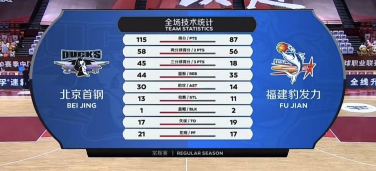 福建(22-22):孙椿棚20分7板,徐铭智17分3助,何重达14分8板4断,卡米然12分3板,汤杰13分3板6助,黄毅超2分1板,陈林坚2分1板,胡珑贸5分4板,李江淮2分1板。