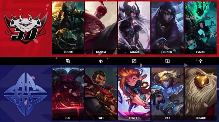 蓝色方JDG:厄斐琉斯、盲僧、巴德、铁男、妖姬