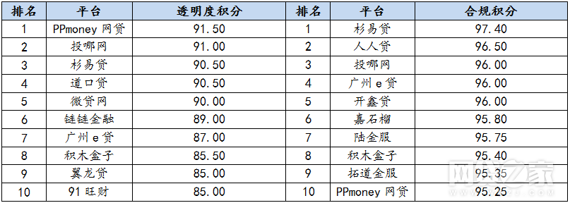 以抢标较快的杉易贷为例,网贷之家最新发布的1月合规透明榜单显示,杉易贷合规透明度两项指标均进入全国前3,而陆金所、人人贷则进入合规榜前10。