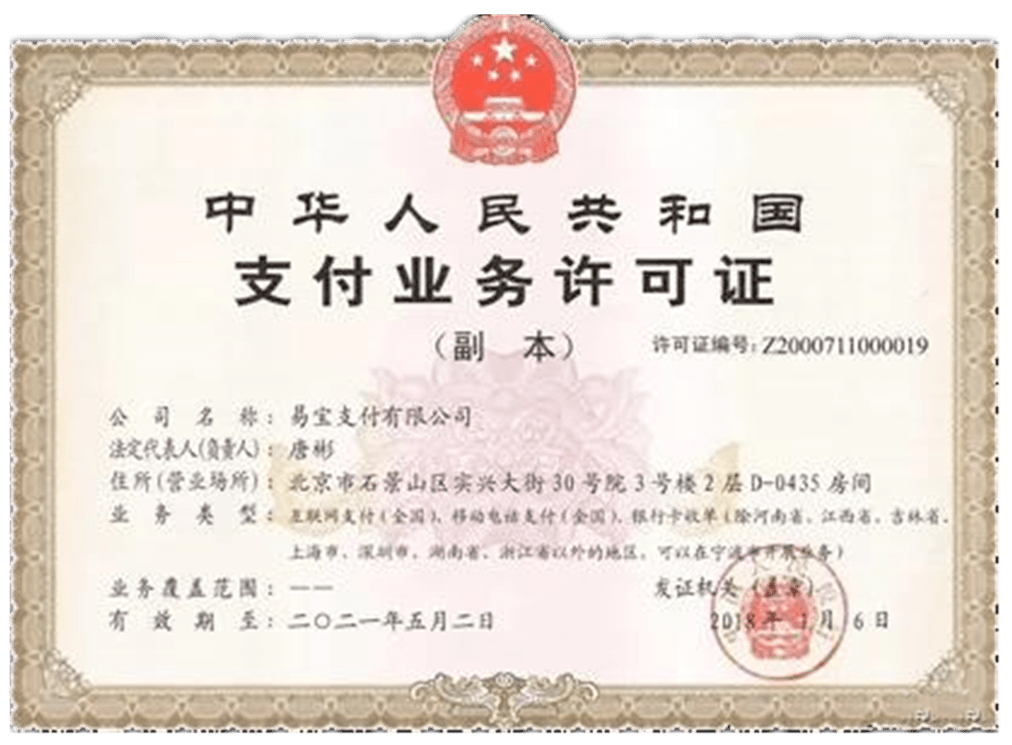 易宝支付2006年便创立了行业支付模式,陆续推出了网上在线支付、信用卡无卡支付、POS支付、一键支付等创新产品,先后为航空旅游、行政教育、电信、保险、新零售、消费金融、互金、跨境等众多行业提供了量身定制的行业解决方案,为产业转型及行业变革做出了积极贡献,并保持行业领先地位。2011年5月,易宝支付获得首批央行颁发的支付牌照