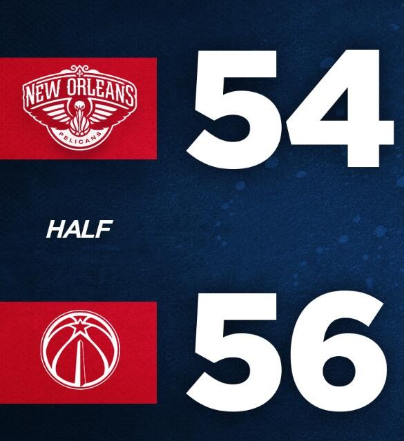 次节回来,内皮尔一上来为奇才命中三分,但鹈鹕的海耶斯和杰克逊继续杀伤内线得手,鹈鹕把比分缩小到34-35。不过,鹈鹕之后命中率下滑,奇才的内皮尔、邦加则突破得分,帮助奇才重新扩大领先。后来鹈鹕及时找回手感,摩尔命中三分,霍勒迪连续快速反击拿下4分,率领鹈鹕打出一波9-0,以43-41反超比分。可是鹈鹕随后又出现状态起伏,他们频频失误,奇才的八村塁站出来里突外投连得6分,帮助奇才以49-45再次领先。此节末段,布莱恩特在篮下得手并命中三分,奇才保持着领先。霍勒迪在最后30秒挺身而出命中三分,鹈鹕以54-56落后2分结束上半场。