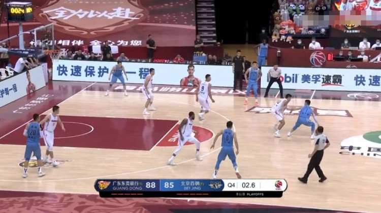 北京扳平的机会没有把握住,广东紧接着就通过传导直接打穿北京防线,找到内线的空篮机会, 2分分差变成4分,然后进攻回合没有内线的穿插,北京外线潦草出手,不中之后还配上了一次犯规,回过头来,再次被广东拿到2分,分差拉开到了6分。