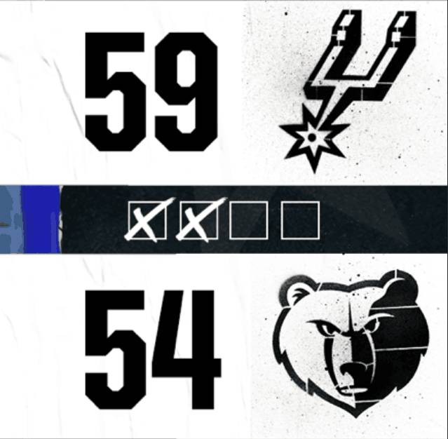 次节开局灰熊迅速掀起一波攻势,阿伦连投带罚拿下5分,灰熊一波7-0的小高潮迅速反超比分。马刺凭借凯尔登-约翰逊和沃克的两记三分及时止血,但灰熊这边攻势相当稳定,瓦兰丘纳斯连砍5分,加上狄龙的抛投得分,灰熊一直咬住比分。拉锯战中马刺顶住压力逐渐重新占据上风,怀特的关键三分稳住局势,加上盖伊的4记罚球全部命中,马刺回敬一波12-4的攻势重新拉开比分。末段双方均两罚全中拿分,马刺以59-54领先灰熊结束上半场。