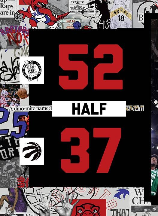 8月8日讯 今天,NBA常规赛,猛龙对阵凯尔特人。上半场结束时,猛龙以37-52落后。