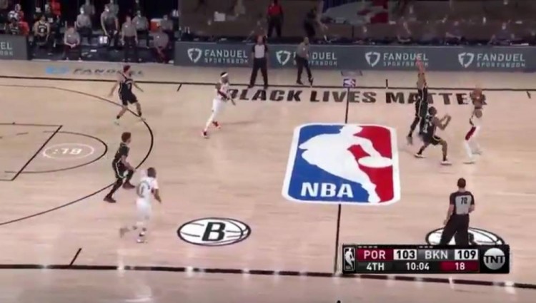 不过利拉德在第四节开始爆发,在命中一记超远三分后,篮网在之后的一个回合祭出了未过半场就双人包夹利拉德的防守战术!