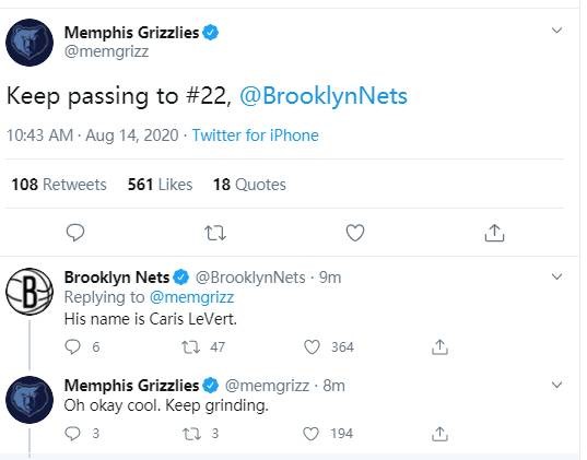 原来皮是会传染的 灰熊官推在线调侃篮网官推2020-08-14 10:50:18 Twitter8月14日讯 NBA焦点战篮网VS开拓者的比赛进行到第三节。