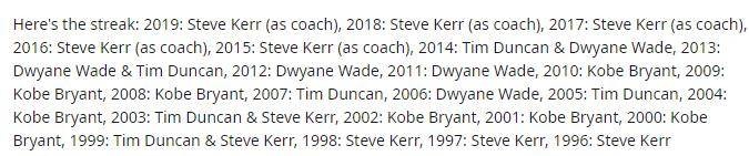 据统计,今年也将成自1995年来第一次无科尔、邓肯、科比或韦德的总决赛。