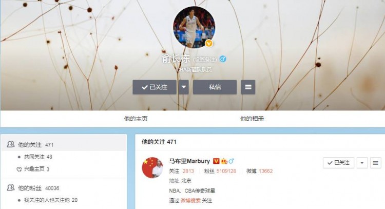 8月17日讯 今早就有知情人透露,俞长栋下赛季将加盟北控,目前,俞长栋的微博关注列表里,也新增了北控主帅马布里。