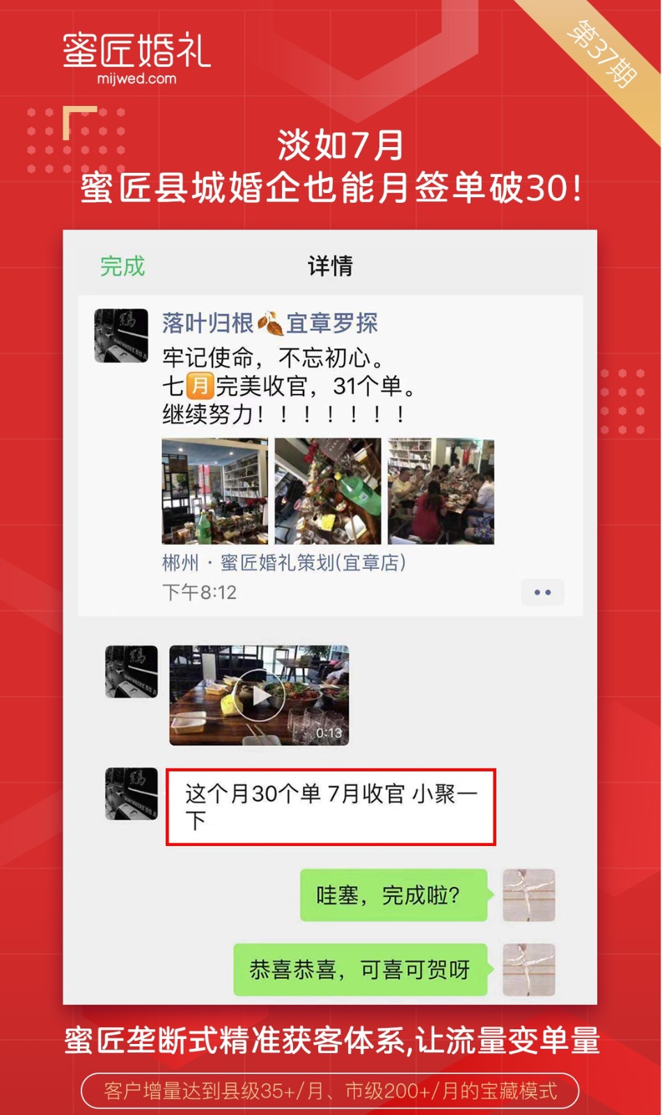 王总说:作为二三线%的年轻人都在外地上班,很多本地老板都只盯着市里面几个酒店,根本不晓得现在消费者都在网上咨询了解。也是通过蜜匠婚礼的互联网获客能力,一个半月时间蜜匠婚礼总部就给了300多对客户,突然这么多顾客上门,经常一天忙得水都没喝一口,赶忙招人扩充团队,手机一天到晚不歇气。