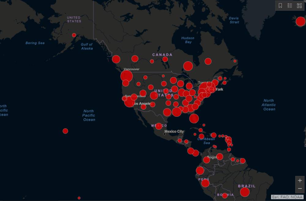 约翰斯-霍普金斯大学:美国累计新冠肺炎确诊病例7324例2020-03-19 02:09:38 Arcgis3月19日讯 根据美国约翰斯-霍普金斯大学实时数