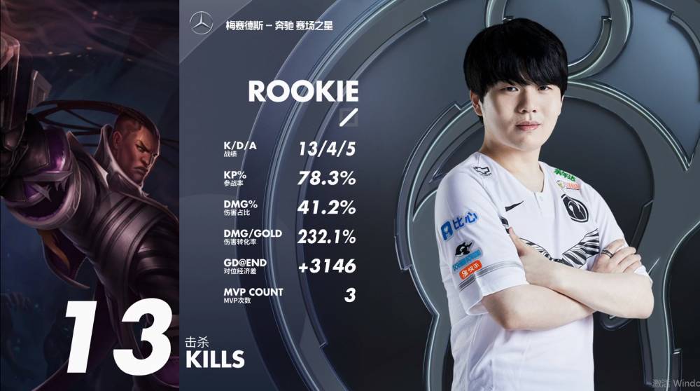 【2:31】LGD奥拉夫来到中路,泰坦先上前留人。奥拉夫闪现E劈死发条拿下一血。