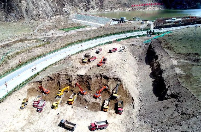 立夏过后的玉树,草木争相吐露嫩绿。5月8日,记者在玉树市禅古水电站旁看到一幅热火朝天的施工场景。几十辆环保渣土车在十几辆挖掘机后依次等待装车,有的车辆装满后正在驶离施工地,有的正在驶入施工现场,施工地与214国道的交汇口,三名交警正在指挥着施工现场的渣土车辆和214国道上车辆的有序会车……