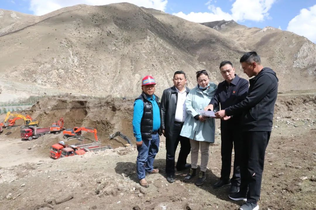 在施工现场,玉树市政府、玉树市林业和草原局、玉树市自然资源局领导,施工企业负责人等正在现场办公,以确保施工进度和施工质量。