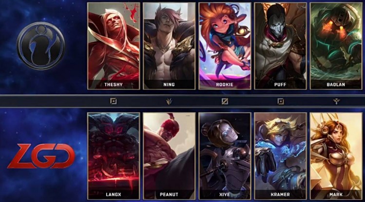 红色方IG:EZ、佐伊、盲僧、狗熊、锤石