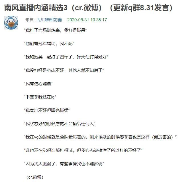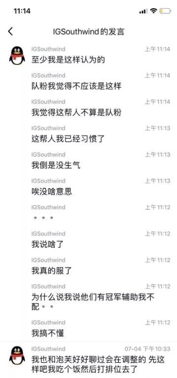 8月31日讯 昨日的冒泡赛上IG最终1-3负于了LGD无缘世界赛,在今天早上Southwind的直播中,一些言论被搬运到豆瓣上发帖带节奏,随后南风本人在QQ群内现身进行了澄清:
