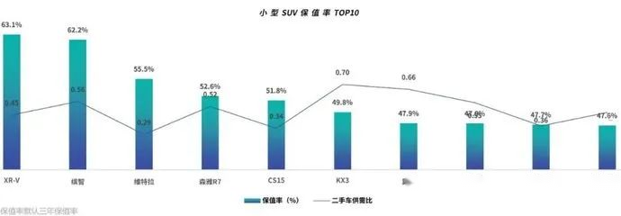 小型SUV这个级别的保值率中,前3名分别是本田的XR-V、缤智,以及铃木的维特拉。作为一对姊妹车型,本田的XR-V与缤智可以说是小型SUV保值率上的常客了,同时也常年占据着合资小型SUV销量榜的前一、二名。它们俩是两田推出的双车战略产物,同平台同动力,其差异仅仅只在配置与外观方面。
