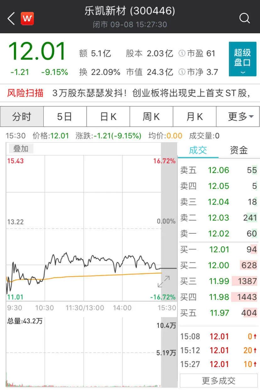 9月7日晚间,由于“公司生产经营活动受到严重影响且预计在三个月以内不能恢复正常”,乐凯新材和天龙光电双双发布关于将被实施其他风险警示(ST)的提示公告。乐凯新材和天龙光电也将成为创业板注册制后首批被ST的个股。