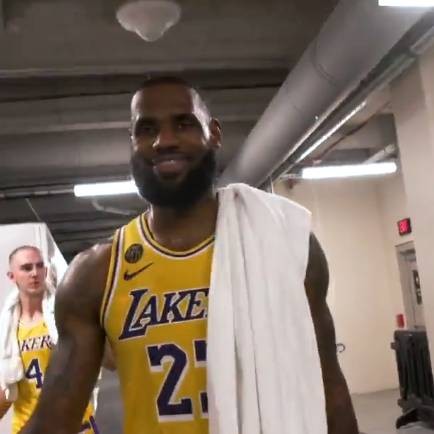 赛后,湖人官方发布视频,视频中詹姆斯浓眉二人一起在球员通道入口等待卡鲁索,随后詹姆斯还赞扬了卡鲁索的表现:“投篮表现太出色了。”