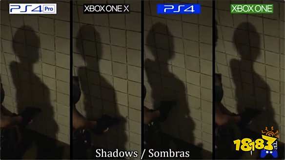 在帧的问题上,Xbox one 由于机能问题,只能维持在30-47帧。PS4在一些场景可以到60帧,在一些吃配置的场景,也可以到45帧以上。PS4 Pro 除了战斗场景,基本可以维持60帧稳定,而机能好的Xbox one X则出乎意料的只有40-58帧。看来卡普空对PS4主机的优化更好一些。
