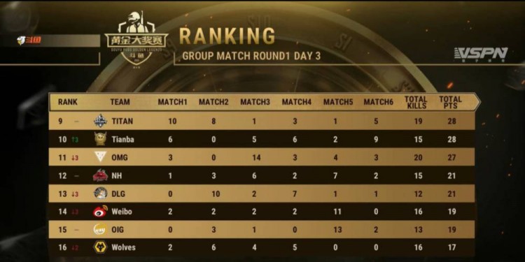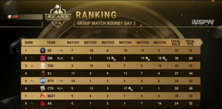 9月13日讯 今日PUBG斗鱼黄金大奖赛第三日开打,今日战况焦灼,前排队伍之间比分咬的很死。KX在第二局斩获一鸡,来到本日榜首。以两分之差落后的QM今日状态爆棚,分别于第三、第五、第六局吃鸡,以收获三鸡的姿态居于次席。IFTY和CTG则分别在首局和第四局成功吃鸡排在五六位。本日具体排名如下:
