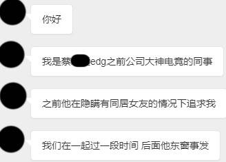 根据描述这位女员工的第二个微博账号也已经异常,所以请人代发。又一位遭到EDG摄像师蔡某骚扰的女员工在看到之前的证据后也站了出来,讲述了她的遭遇。
